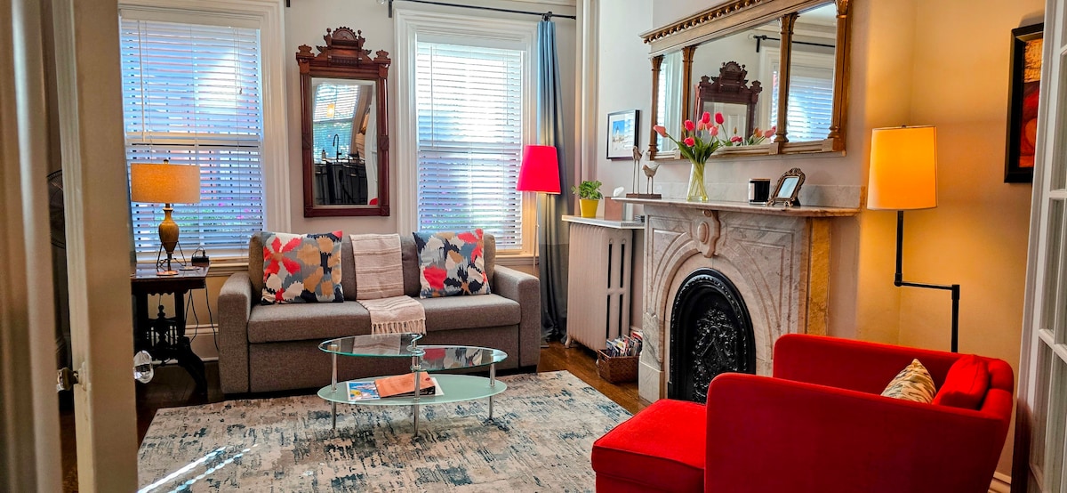 Упоминается в путеводителе по бостонскому дизайну. Роскошная квартира на полном этаже в историческом и очаровательном районе газового освещения района Бостона-Чарлстаун. В нескольких шагах от памятника Банкер-Хилл и в 1,5 мили от казино Encore. Новая кухня с высококачественной медной отделкой, новой техникой. HD Smart TV с кино и потоковыми приложениями. Матрас с эффектом памяти размера Queen size, гардеробная, удобный выдвижной диван, полностью оборудованная ванная комната с новым душем, стиральная машина/сушилка и гостиничные удобства (шампунь, мыло и т. д.).