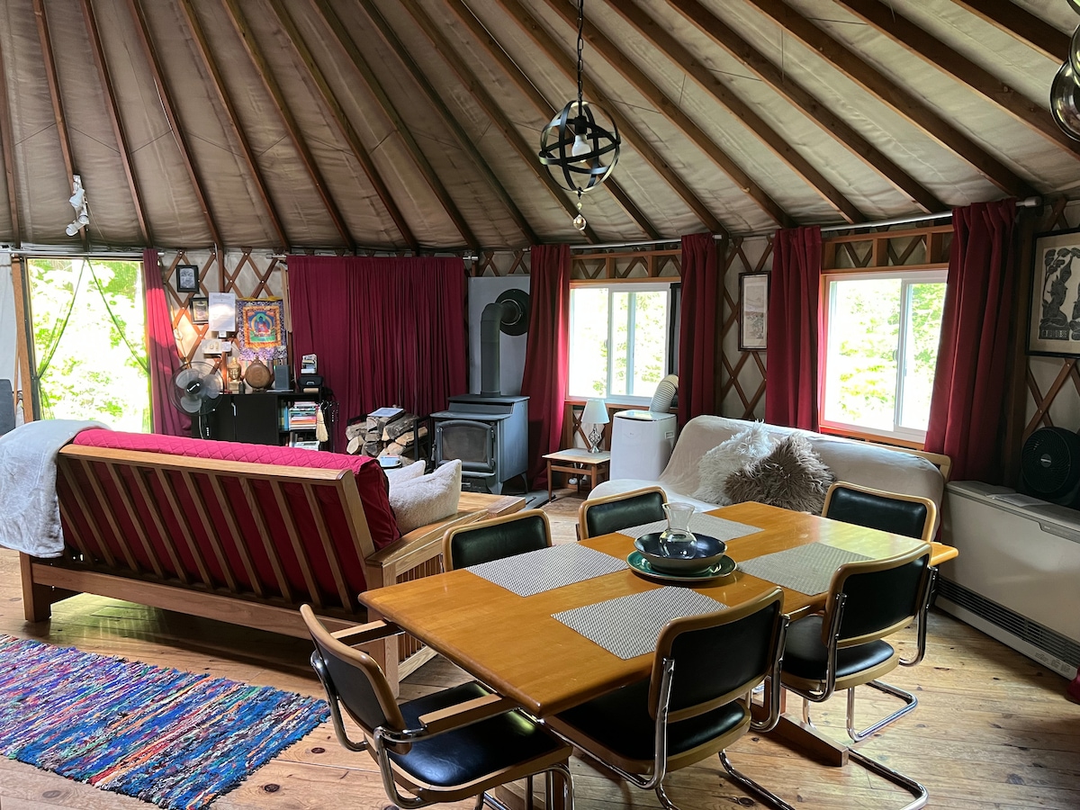 Юрта в лесу 30 футов в диаметре — 700 просторных квадратных футов. Он окружен деревьями и имеет двор. Минимальный срок проживания в выходные дни — 2 ночи. 6 и 12 октября в настоящее время свободны, если вы хотите поездку с осенней листвой. Сбор за однодневное проживание составляет 50 долларов. Разрешены 2 собаки с согласия с моими правилами в отношении животных и сбором в размере 50 долларов США Wi-Fi 1000 мегабит в секунду, оптоволоконная сеть. Газовый гриль на улице, костровище на улице, душ на улице доступны с мая по октябрь.