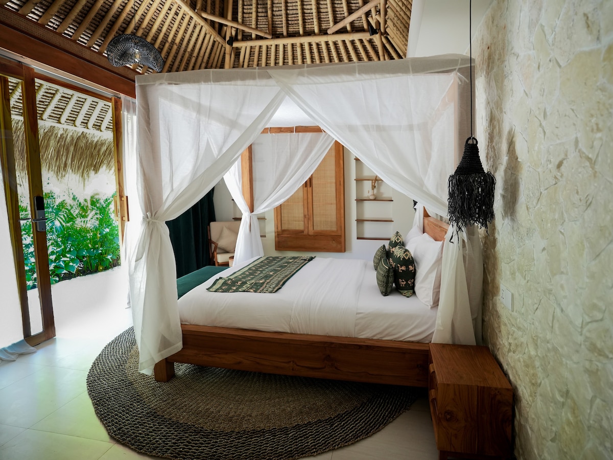 Enjoy a unique island experience in our Glamp Villa with Shared Pool, where comfort meets tropical elegance. Each room features stylish interiors inspired by Sumbanese design, a king-size bed, and direct access to a shared pool — perfect for a refreshing dip under the island sun. Located in a serene area of the resort, the Glamp Villa with Shared Pool are designed for relaxation and connection, offering both privacy and a sense of community.