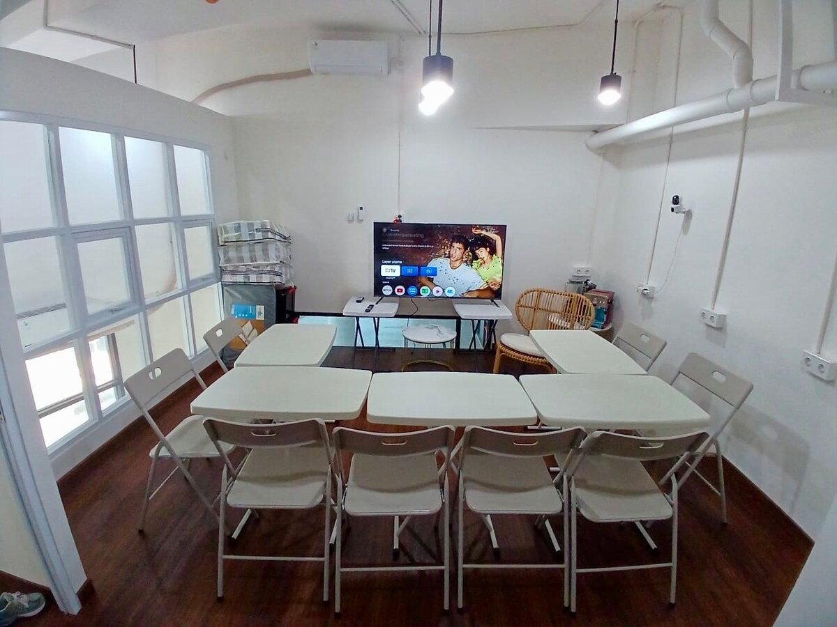 Ruang Private di atas cafe buat belajar bareng / meeting. Tidak ada tempat tidur. WC umum di belakang cafe.
