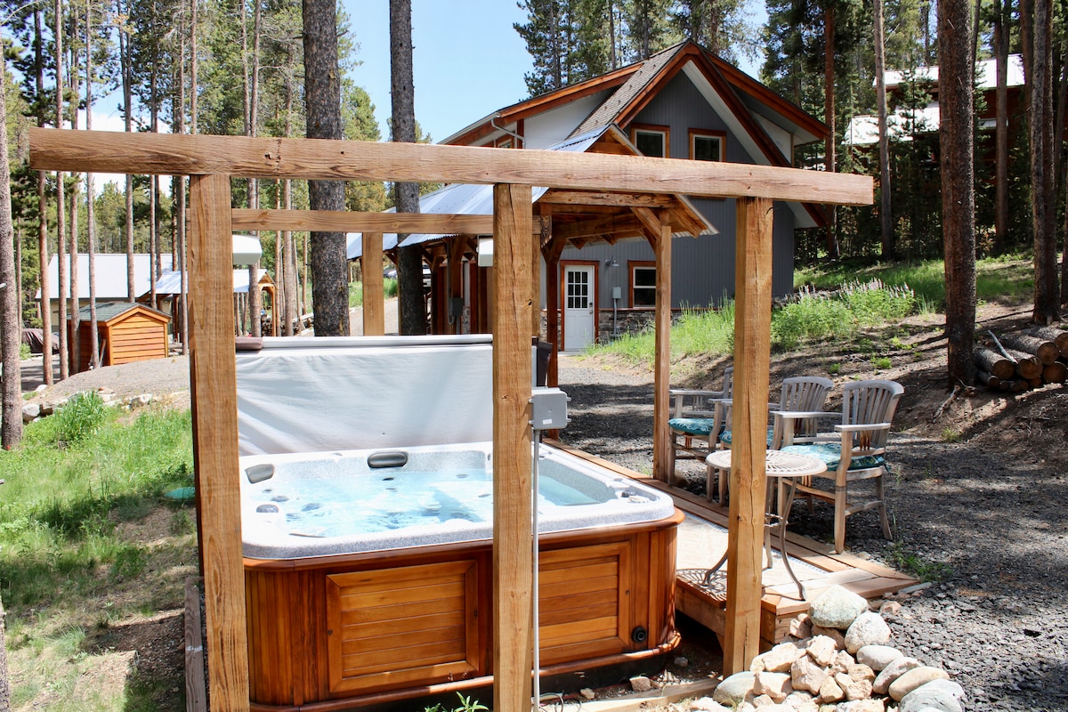 Наслаждайтесь уединением и атмосферой нашего роскошного дома-шалаша. Джакузи, костровая яма и рыбалка нахлыстом на заднем дворе - квинтэссенция Колорадо. Всего в 3,5 милях от Peak 9, откуда легко добраться до подъемников, ресторанов, парков и магазинов на Мейн-стрит в Брекенридже. 3 спальни, 3 ванные комнаты и 2 гостиные предоставляют гостям достаточно личного пространства. Кухня красиво оборудована современной техникой. Зарядное устройство Tesla Destination Charger на территории. Это поистине потрясающее жилье не разочарует! Лицензия № LR21-000042
