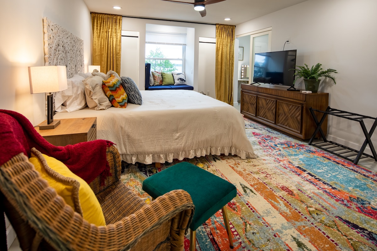 «Latitude 28» в Floral City - это просторный мобильный дом с 2 спальнями и 2 спальнями. Внутри вас ждет полуоткрытая гостиная с отдельными спальнями; постельное белье Ciozy с подушкой размера Queen size и ванной комнатой в главной спальне, в гостевой спальне есть гелевый наматрасник. В гостиной есть уникальные элементы дизайна от местного мастера. К услугам гостей 40-дюймовый телевизор Smart TV, Wi-Fi, полностью оборудованная кухня с Keurig. Большая солнечная комната с видом на обширную лужайку, отлично подходит для наблюдения за птицами и расположена всего в 0,07 милях от велосипедной дорожки для любителей велоспорта!