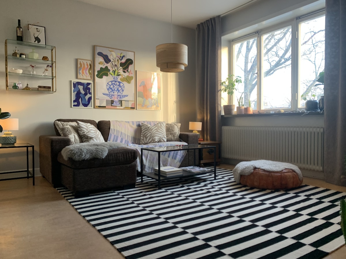 Добро пожаловать в мою большую и комфортабельную квартиру с одной спальней в центре оживленного района Стокгольма, SoFo, наполненной модными магазинами и уютными кафе. Открытая и просторная планировка квартиры приглашает вас отдохнуть и расслабиться после дня в городе, и вы можете приготовить что-то вкусное на полностью оборудованной кухне, хотя у вас никогда не будет вариантов с множеством ресторанов прямо за углом. 15 минут пешком до Старого города, 4 минуты пешком от станции метро и супербыстрого Wi-Fi.