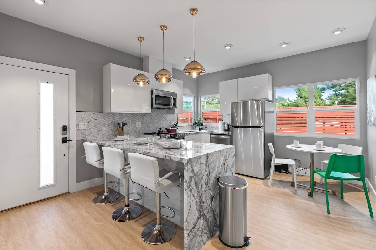Откройте для себя роскошь с современным уклоном в нашем полностью оборудованном ADU. Современные удобства, такие как автоматические жалюзи, кондиционер/отопление, все в одной стиральной машине/сушилке. Независимо от того, работаете ли вы удаленно или отдыхаете, наше выделенное рабочее место обеспечивает производительность. Особенности: - Удобства Smart Home - Отдельное рабочее место и обеденная зона. - Уголок музыканта: фортепиано, гитары и укулеле - Общий двор с грилем и костром и гамаком. - Playful Pooch On-Site Бронируйте сейчас для непревзойденного слияния роскоши, технологий и радости!
