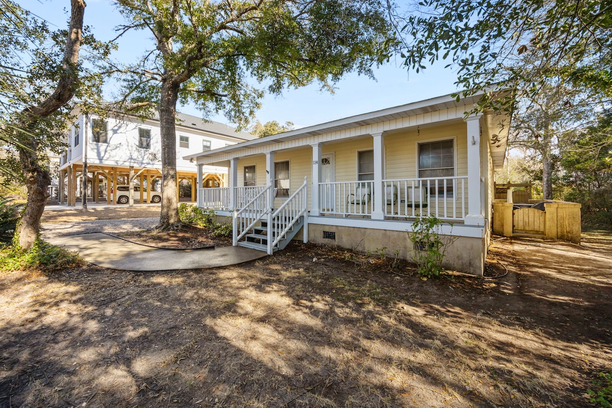 Отдохните на спокойных берегах острова Оук и безмятежность болота в The Hammock House. Эта гавань с 2 кроватями и 2 ванными комнатами окружена живописными болотами с захватывающими видами и океанскими волнами всего в 2 кварталах. На гриле и поужинайте на свежем воздухе, расслабьтесь в гамаках или отдохните в очень удобной гостиной после долгого дня на пляже. Наслаждайтесь тишиной и покоем пляжей Каролины. СКИДКА НА ДЛИТЕЛЬНОЕ ПРОЖИВАНИЕ: с декабря по март 2500 долларов плюс налоги и сборы. Отправьте нам информацию о травме.