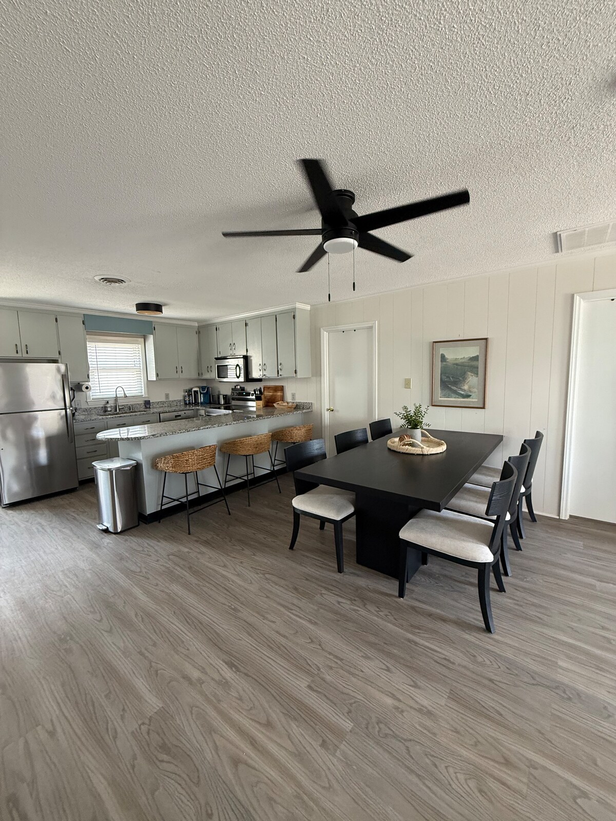 This centrally-located, dog-friendly, single-level home will have you creating perfect days in no time! Newly remodeled in 2022. Less than 2 miles to the beach, minutes away from restaurants, and several golf courses within reach! Inside you will find hardwood floors, an open living/kitchen area with plenty of room to gather, and a charming adjacent room that includes a table that seats six. TVs in every room with streaming, and Serta mattresses to ensure a blissful nights sleep!