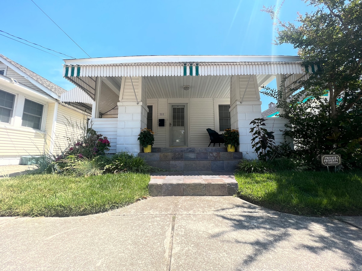 Добро пожаловать в «Sunny Retreat», наш прекрасный пляжный коттедж - этот дом идеально подходит для пар и небольших семей. К услугам гостей две спальни, красивая гостиная, полностью укомплектованная кухня и очаровательная ванная комната с Bluetooth-колонкой в душе! В этом доме есть все для отдыха на пляже. Она расположена в четырех кварталах от пляжа и в одном квартале от залива на тихой улочке в Wildwood Crest. Мы предоставляем пляжные стулья и все необходимое.