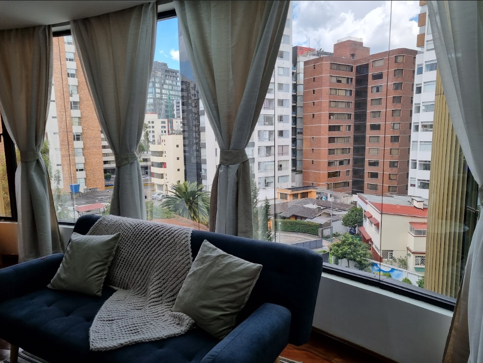 Красивая квартира, которая находится в одной из самых стратегических точек Кито. Неподалеку находятся: El Quicentro Norte, Sheraton Quito Hotel, La Carolina, CCI, Av. de los Shyris, среди других исторических точек. В сфере много ресторанов, предприятий, банков и офисов публичных предприятий. Он имеет балкон и прекрасный вид на проспект, полностью меблированный и с круглосуточной охраной.