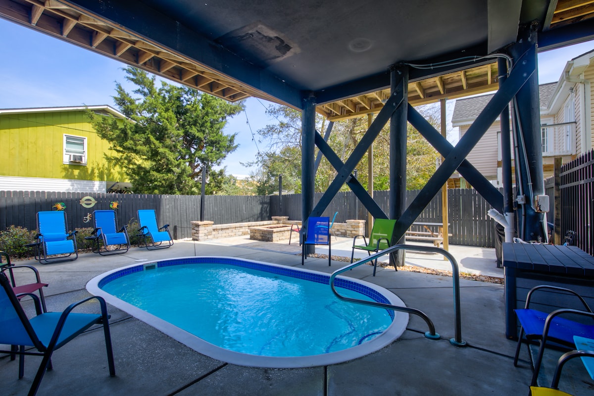 3 blocks to restaurants & stores. 10 blocks from Surfside Beach. Close to Market Common (7 miles), Myrtle Beach (9 miles), Charleston or Wilmington (70 miles). New 2022 Renovation with all new furnishings and appliances. Residential neighborhood - easy golf cart ride to Surfside oceanfront. Dogs Welcome w $35 per dog fee. Master bedroom suite w private bath, two other bedrooms share a 2nd bathroom. Split floorplan for privacy - lots of light. Fenced backyard (fully fenced semi-secure).