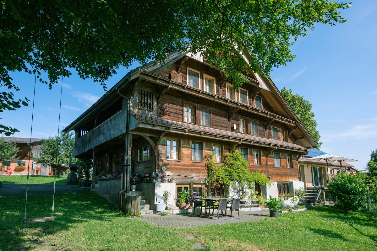 Мы предлагаем с любовью меблированный двухместный номер в очень уютном фермерском доме с идиллическим садом. Наш дом находится недалеко от дороги, соединяющей Люцерн, и все еще очень сельский и тихий. До Люцерна легко добраться на машине за 20 минут, а на автобусе - за 25 минут. Автобусная остановка в 3 минутах ходьбы от нашего дома. С нами в доме все еще живут наша дорогая собака Найма и четыре милые кошки. Просто чувствуйте себя комфортно с нами :-)