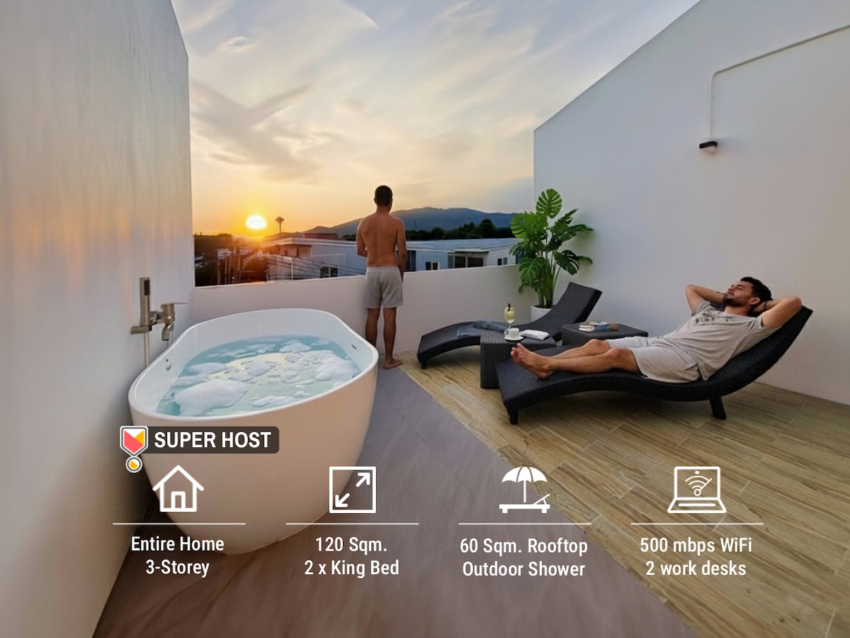 Недавно отремонтированный дом расположен в городе, всего в 5 минутах от торгового центра Maya и популярных туристических достопримечательностей, таких как дорога Нимман, Университет Чиангмая, зоопарк Чиангмая и дои-Сутеп. На расстоянии пешей прогулки есть несколько знаменитых магазинов кофе и тортов. Местные продуктовые магазины в нескольких шагах от дома. Дом подходит для семей и компаний друзей. К услугам гостей гостиная, кухня, 2 ванные комнаты с туалетом, 3 спальни и терраса с видом на горы.