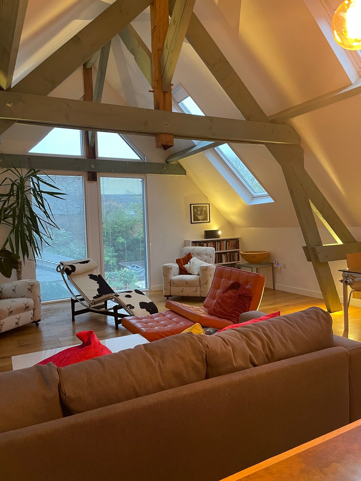 Welcome to our peaceful first-floor apartment, recently converted for quiet luxury with iconic mid-century design pieces, antique finds, and contemporary artwork from your professional artist hosts. Accessible via a wide spiral staircase, this private retreat features a spacious and comfortable sitting room with light-filled double-aspect sash windows, a balcony with idyllic paddock views, a mini-kitchen and a large separate bedroom. Perfect for couples, business travelers, sorry, no infants.