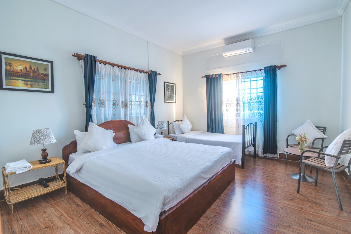 * Новое обновление и хорошо оборудованный с кондиционером для всех спален и гостиной! * Предложите бесплатный трансфер от автобусной остановки. Хотите найти свое истинное я? Сделайте себе одолжение! Оставьте зону комфорта, чтобы вы жили как местные жители в настоящей местной деревне рядом с городом. У вас будет незабываемые аутентичные впечатления от пребывания здесь. Жилье расположено примерно в 4 км от Ангкор-Вата и в 4 км от центра города.