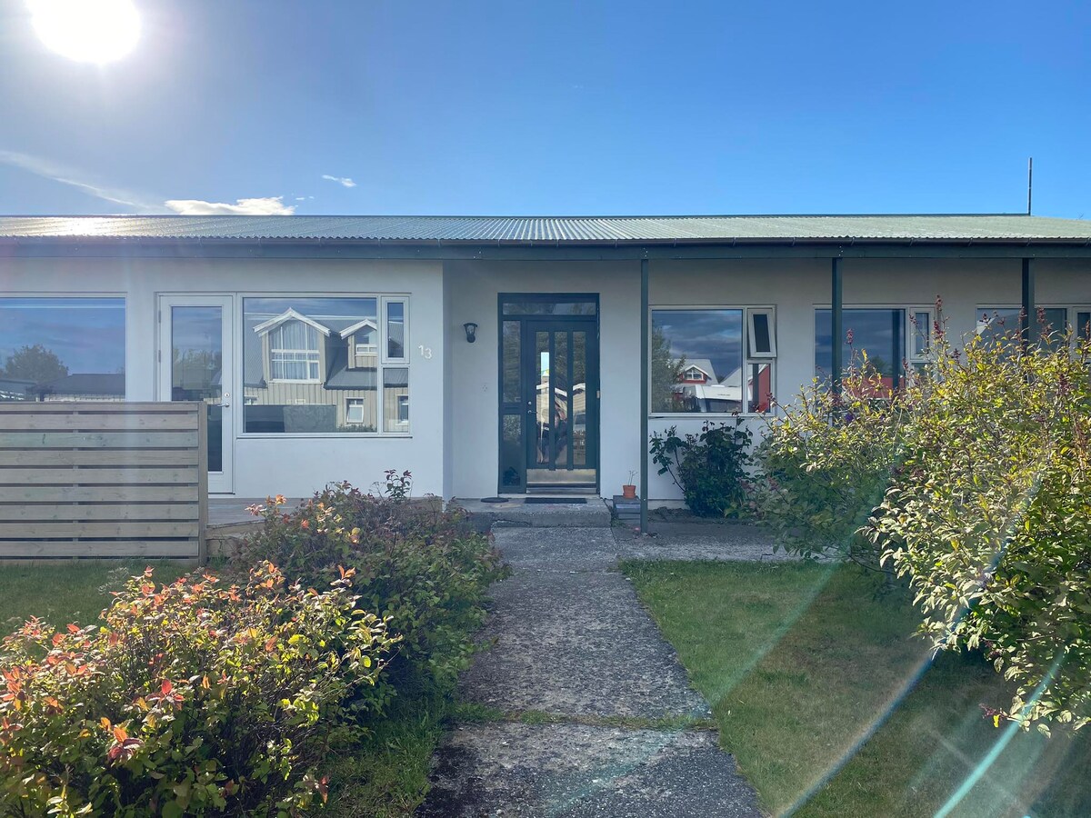 Маленький и уютный домик в тишине сельской местности, прямо под горой с красивым ледником, как и сосед. С двумя спальнями, одной двуспальной кроватью и двумя односпальными кроватями, обеденной и гостиной зоной, телевизором и бесплатным Wi-Fi, хорошо оборудованной кухней. Большое патио с уличной мебелью и барбекю. Идеально подходит для спокойного отдыха в сельской местности с красивыми пешеходными площадками, геотермальными гидромассажными ваннами в нескольких минутах ходьбы и природой, а также захватывающим видом на северные огни зимой.