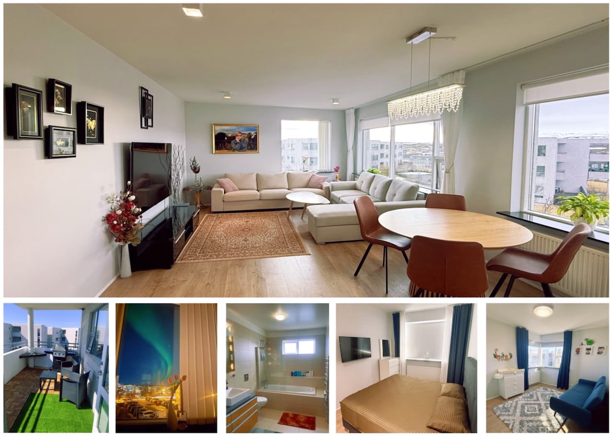 Добро пожаловать в нашу светлую и удобную для семей квартиру с прекрасным видом, расположенную в тихом районе недалеко от исландской природы. Всего в 8 минутах ходьбы от озера Эллидаватн и недалеко от пешеходных троп Хейдморка. Ближайшая автобусная остановка находится всего в 1 минуте ходьбы, откуда легко добраться до центра города, а супермаркет и заправка находятся неподалеку. До бассейна Árbæjarlaug всего 6 минут езды. А еще здесь можно увидеть северное сияние!