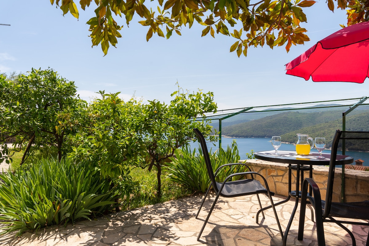 Holiday sea view Apartment, just 50 m from the sea, near Labin Discover your dream getaway in this enchanting apartment, nestled just steps from the shore. Bask in the sun on the terrace, where breathtaking bay views and romantic sunsets await. A private path leads you to crystal-clear waters, perfect for swimming and snorkeling. <br>Spacious terrace with stunning sea views<br>Indulge in the ultimate coastal retreat, where relaxation meets adventure. Boat mooring Euro 10 day<br><br>