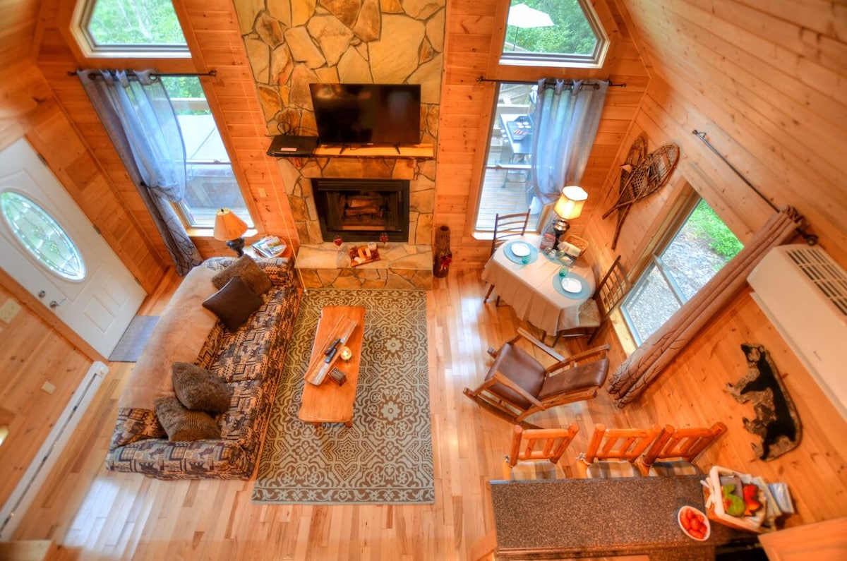 Уединенная хижина в горах, расположенная в центре города рядом с множеством достопримечательностей и развлечений на южной стороне Дымчатой горы в Нат'л парке рядом с ручьем. Очень уединенный; две спальни, одна ванная с туалетом и полностью оборудованная кухня с приборами из нержавеющей стали. Большой красивый газовый камин с дистанционным управлением/ мини-сплит для отопления и воздуха. Большая внешняя многоуровневая палуба с гидромассажной ванной на 4 человека, пропановым грилем и пожарной ямой.