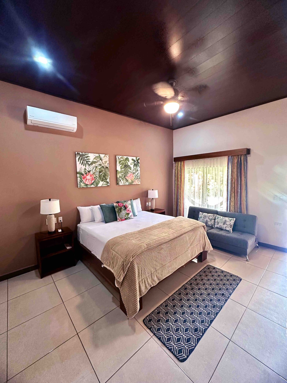 Расслабьтесь в этом тихом и стильном пространстве. 1 км от центра Фортуны и 300 м от Сальто. Прогуляйтесь к водопаду Ла-Фортуны. В лофте есть терраса на террасе, бассейн, сад, комната с двуспальной кроватью размера King size, ванная комната, полностью оборудованная кухня, прачечная, частная парковка, кондиционер, роскошная отделка, необыкновенный вид на вулкан и в контакте с горой, идеально подходит для романтических встреч, отдыха и отдыха вдали от городской суеты, но всего в 2 минутах от центра Фортуны.