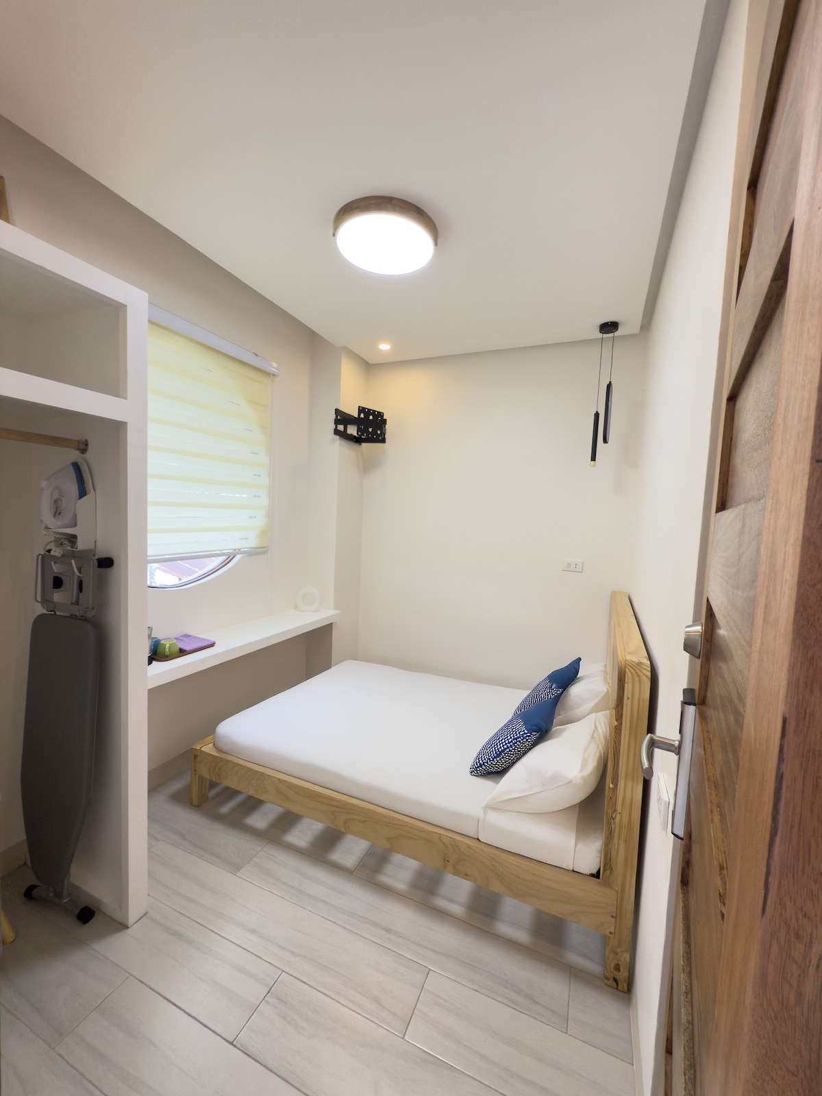 Relax at this peaceful and cozy studio apartment unit at the Solano Homestay in Tanauan, Leyte. The unit has a double size bed and double size pullout bed, aircondition and equipped kitchen where you can cook light meals. Free parking that fits 3 cars.