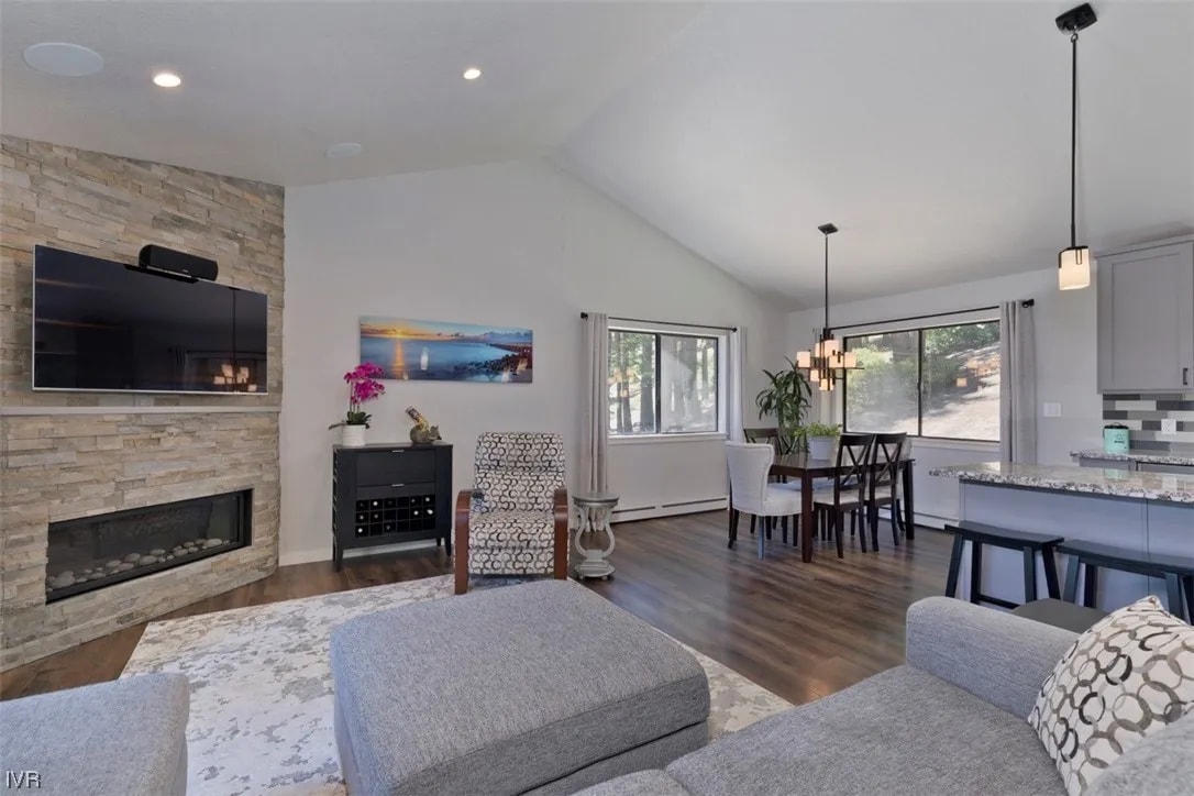 Relax in this beautifully remodeled four bedroom, three bathroom home tucked away in the Tahoe forest of Incline Village. Located on a quiet cul-de-sac with skiing and hiking trails right out the back door, this peaceful retreat features an open concept living area, stone gas fireplace, expansive deck with peeks of Lake Tahoe, and a fully renovated kitchen with custom cabinetry and island.