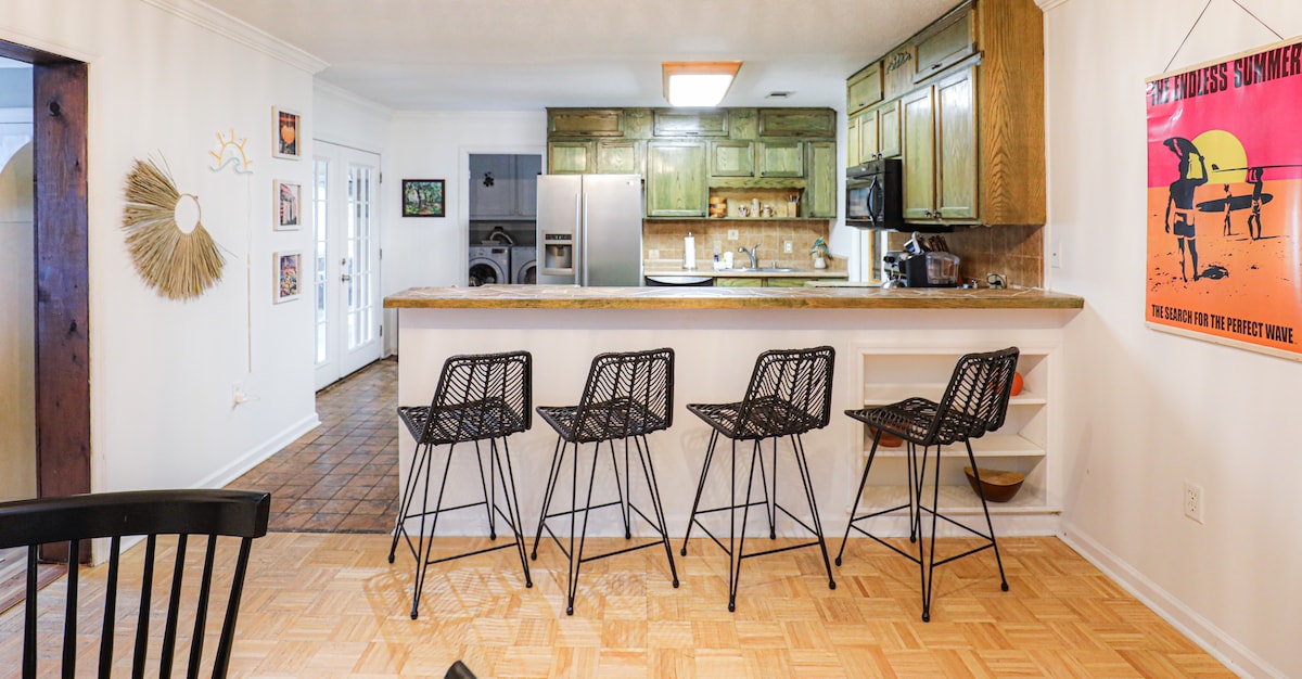 *Больше фотографий ежедневно! Повеселитесь всей семьей в вашем стильном одноэтажном доме с бассейном! Это идеальный центр для вашего пребывания в Саванне - до исторического центра города и острова Тайби примерно за 10 минут! Самое интересное: — Бассейн без подогрева. - Сплеш-панель для детей. - Одноэтажный дом без лестницы. - 4 спальни; - 2 ванные — 14-дюймовые матрасы из пены с эффектом памяти. - Расположена в центре города. - Декор студии McGee. - Пинг-понг, игровые автоматы, дартс. — Парковка на 4 машины. Остановитесь здесь - вы не захотите уезжать!
