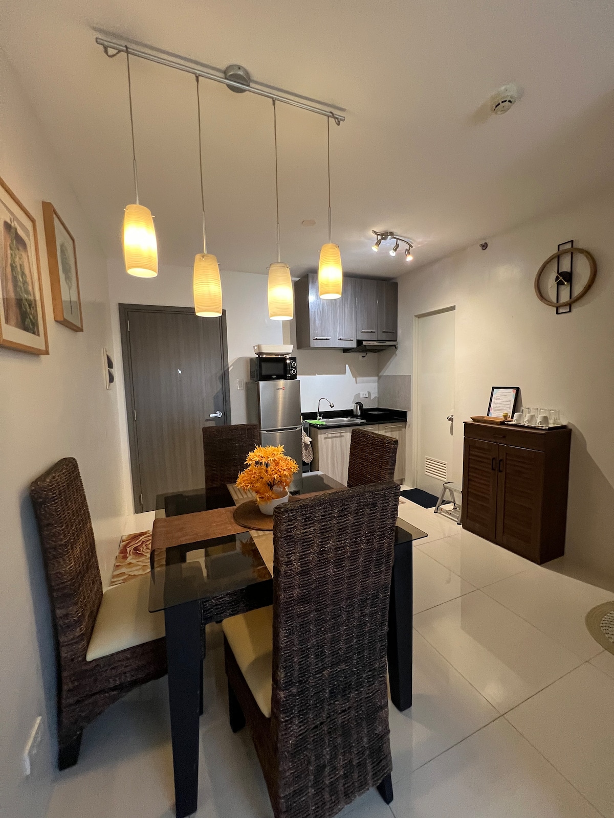 Наслаждайтесь пребыванием в этой уютной и стильной студии в Mesavirre Garden Residences, расположенной в центре города Баколод. В квартире есть следующее, что вы можете в полной мере использовать! - 50-дюймовый смарт-телевизор с Netflix и HBO GO. - Wi-Fi (безлимитный) при300 Мбит/с. - кондиционер; - Холодильник. - рисоварка; -електрочайник - Электроплитка. - душевой обогреватель; - биде; - кухонная утварь и посуда; - утюг - Фен - тапочки; - приветственный набор; - магазин честности; - карточные и настольные игры;