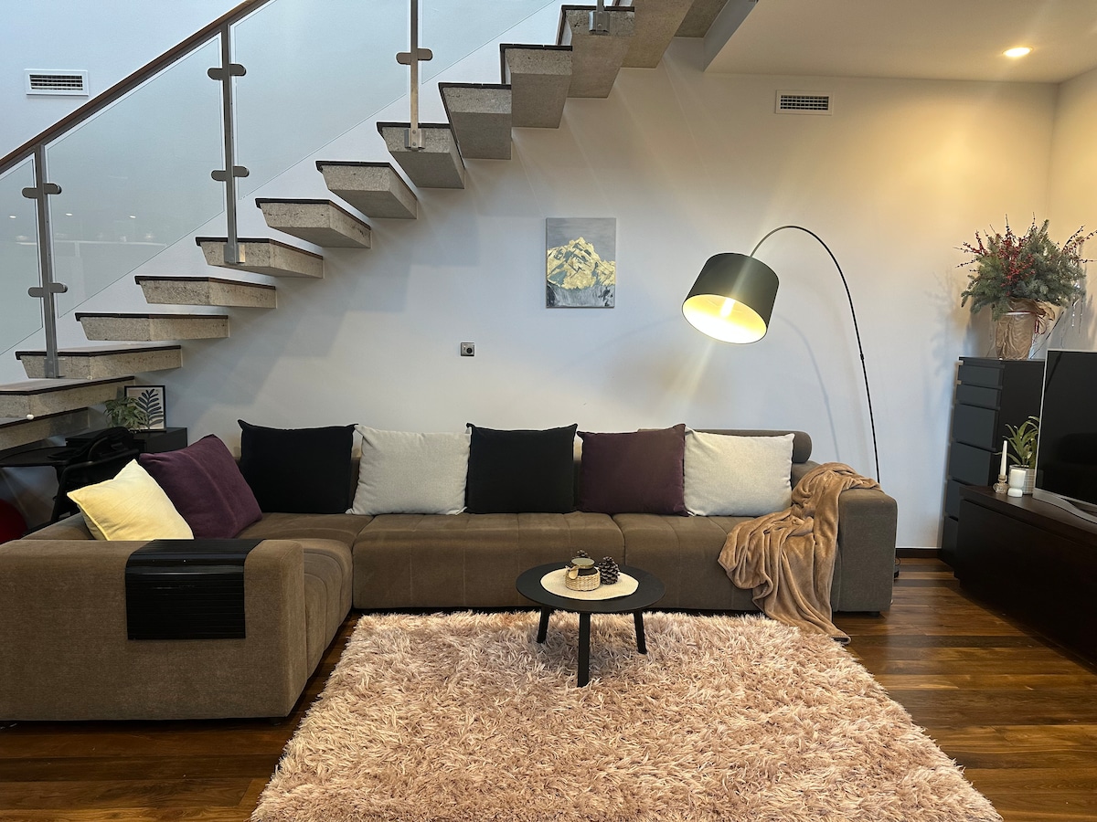 Wake up in this sunny one-bedroom designer home with high ceilings, original art by Anastasia and sculptural rock lamps by Philip. Furnished with high-end pieces, it’s warm, comfortable, and full of character. Sip your morning coffee on the wide balcony with leafy views. Take a seaside stroll along the Stroomi promenade and explore Põhjala creative hub. Cook in the fully equipped kitchen or order in and unwind with a movie. Tallinn’s Old Town and city centre are just a short tram ride away.