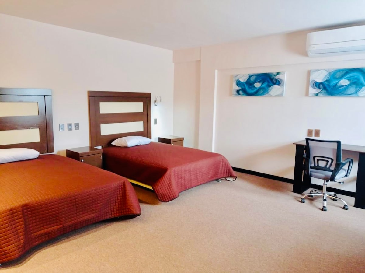 Отдельная комната с отдельным входом всего в 2 минутах от Galerías Altama, больниц и автовокзала. В распоряжении гостей кондиционер, отдельная ванная комната и телевизор. ✅ Отдельный вход ❄️ Кондиционер 📺 Телевизор в комнате 🛏️ Двуспальная кровать 🚿 Отдельная ванная. Эксклюзивное 📍 расположение Отдельное 🔒 жилье 🧼 Гарантированная чистота ⚠️ Важные примечания: Компьютерное оборудование не включено в стоимость.