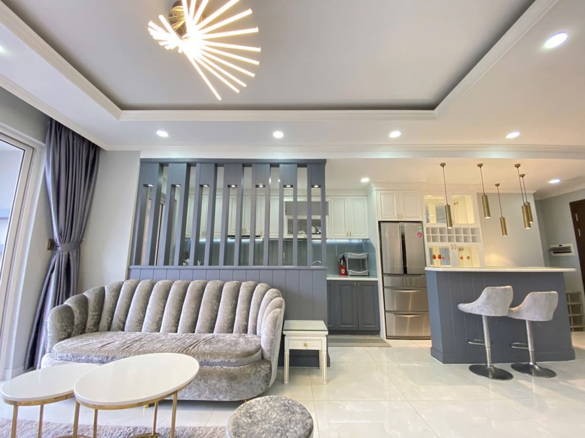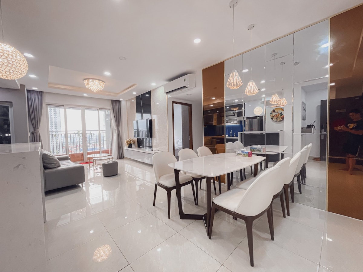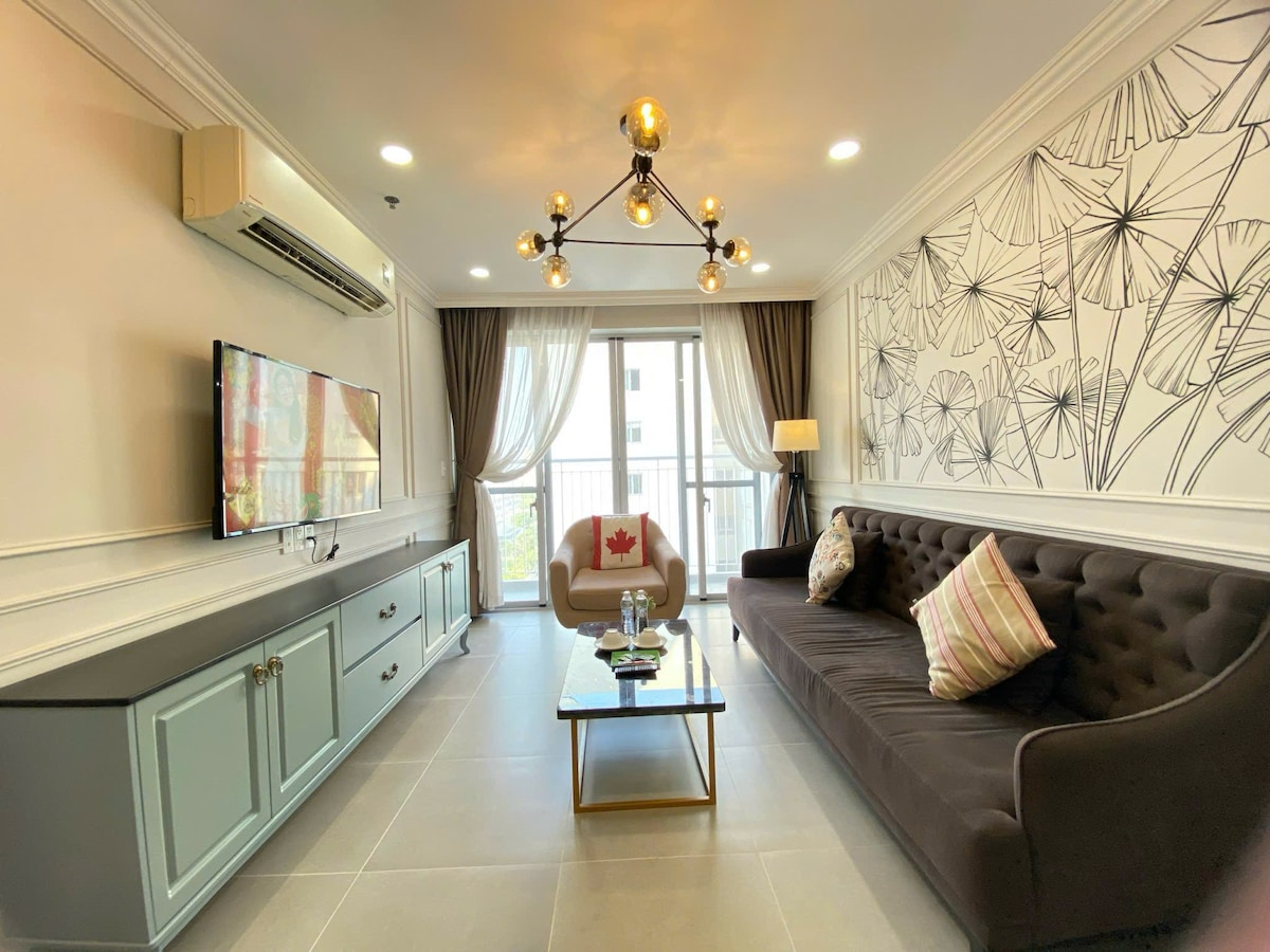 Welcome to Golden Glow, a peaceful river view apartment just minutes from Phu My Hung. Enjoy your morning coffee on the private balcony while taking in the calm river view, or relax in a bright and cozy living space filled with natural light. The apartment is designed for both comfort and convenience, offering a perfect stay for families, friends, or remote work. Everything you need is within walking distance, including supermarkets, restaurants, cafes, gym, and a swimming pool.