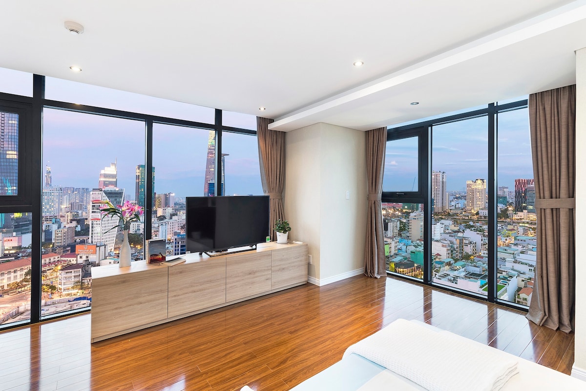 Căn hộ nằm ở tầng cao của một chung cư cao cấp tại Quận 1, Thành phố Hồ Chí Minh. Tôi tự sắp xếp nội thất và chụp hình cho căn hộ này. Với diện tích 90 m2, vị trí căn hộ gần Bùi Viện, Chợ Bến Thành và phố đi bộ Nguyễn Huệ. Vị trí thuận lợi để di chuyển tới mọi địa điểm tham quan, du lịch trong thành phố. Khi lưu trú cùng chúng tôi, bạn sẽ được sử dụng những tiện nghi đỉnh cao HOÀN TOÀN MIỄN PHÍ: - BỂ BƠI VÔ CỰC TẠI TẦNG THƯỢNG CỦA TOÀ NHÀ - PHÒNG GYM HIỆN ĐẠI - PHÒNG SAUNA - SÂN CHƠI