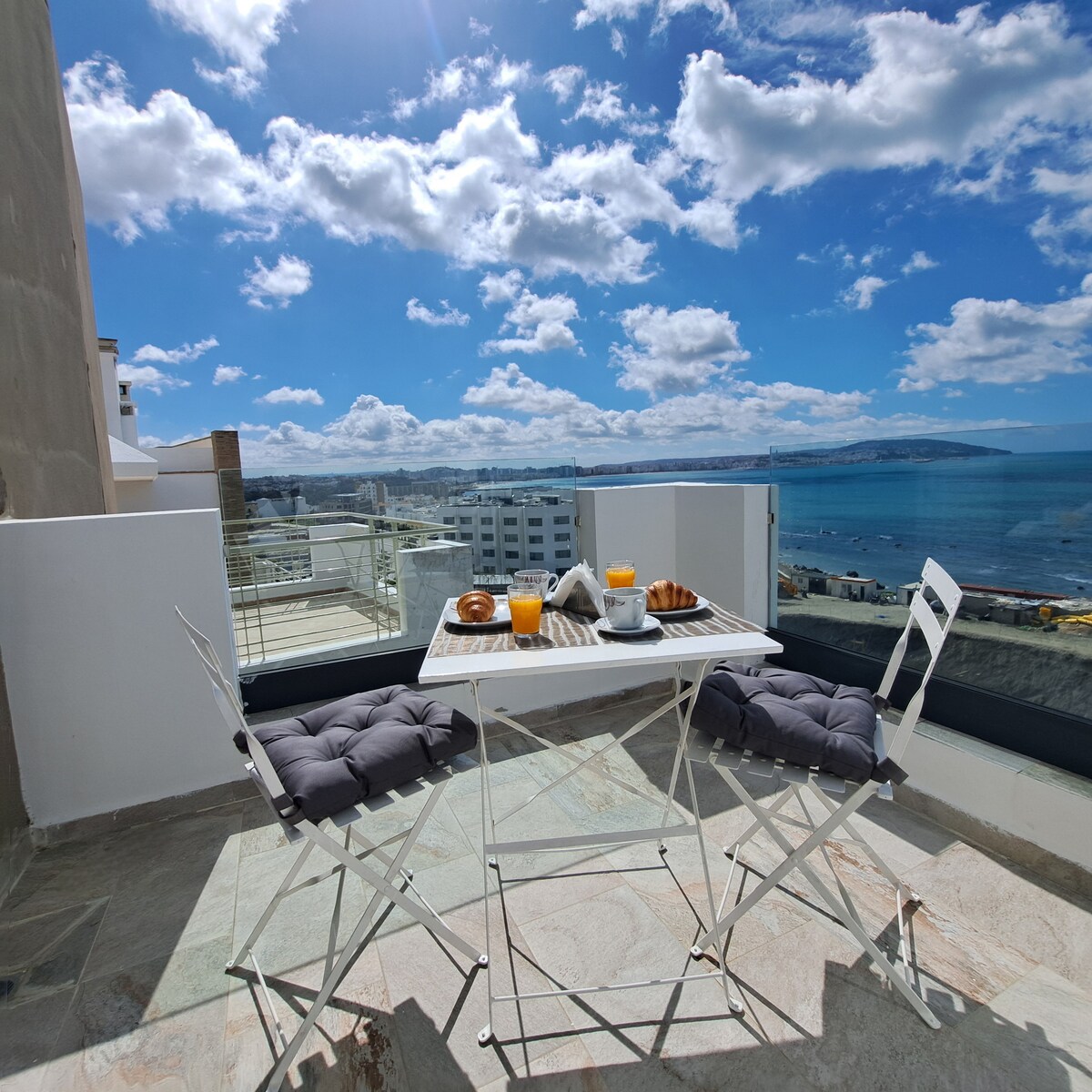 Добро пожаловать в Sweet Serenity, ваше спокойное убежище в Танжере! Наслаждайтесь потрясающими видами на Средиземное море, оживленный порт, Испанию и культовый Гибралтарский пролив, а также очаровательными видами на историческую Касбу. В этой современной уютной квартире 2 спальни, стильная мебель и ортопедические матрасы для максимального комфорта. Всего в 5 минутах от пляжа и рядом с оживленными ресторанами и кафе, это идеальное место для отдыха, романтики или приключений — незабываемый отдых ждет!
