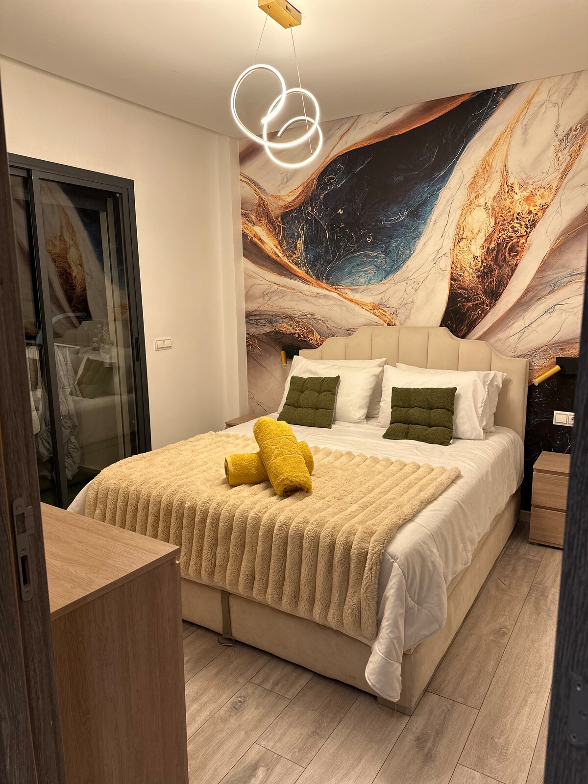 Добро пожаловать в нашу жемчужину в Tanger 's Marina. Погрузитесь в средиземноморскую роскошь в нашей стильной квартире с панорамным видом на море из окна. Наша гавань сочетает в себе современную элегантность и традиционное очарование, расположенное всего в нескольких шагах от знаменитого Корниш-Малабата. Независимо от того, ищете ли вы романтический отдых или расслабляющий отдых, наша квартира обеспечивает идеальную обстановку для аутентичных впечатлений в Танжере.