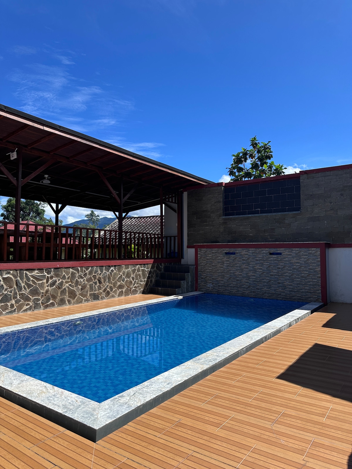 Расположенный в Западной Суматре, вдали от всего массового туризма и оживленных улиц, мы предлагаем комфортную жизнь, спокойствие и взгляд в аутентичную часть индонезийского образа жизни. Площадь 7000m2 земли свободно бродить. На ней расположены 2 основных дома, 1 более маленький деревянный дом и мирная маленькая хижина; идеально подходит для более крупных групп или больших семей. Главный дом расположен с умеренно быстрым Wi-Fi, компьютером, который вы можете использовать, и телевизором.