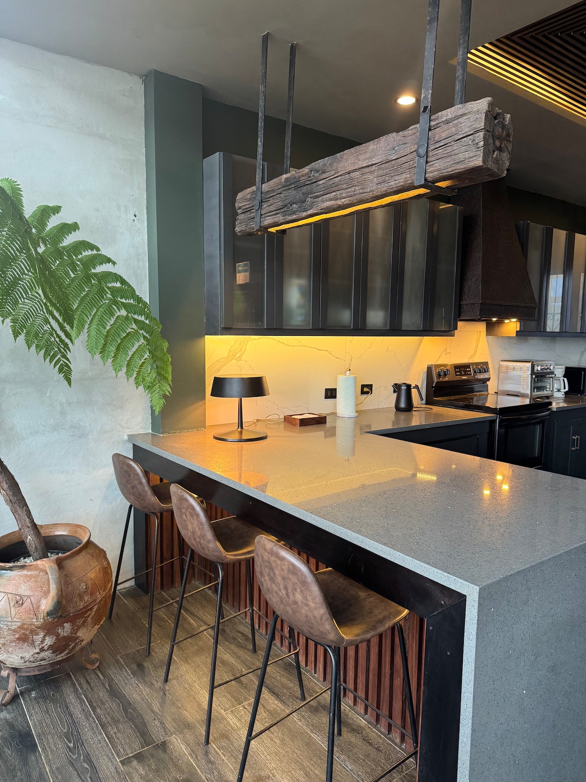 Contemporary design meets colonial Antigua. A restored home in the heart of a UNESCO World Heritage city — walking distance to cafés, restaurants, and cobblestone streets. 3 bedrooms, 2.5 baths. High ceilings, natural light, modern comfort. In-room safes, strong Wi-Fi, rooftop. Walkable to Santa Catalina Arch, Parque Central, and top restaurants. Quiet street, safe neighborhood. Perfect for couples, families, or friends exploring Guatemala.