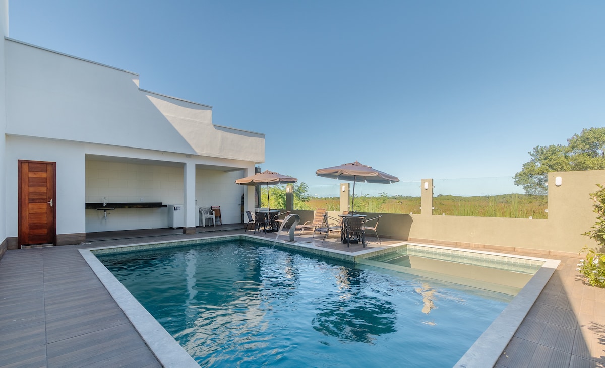 Дуплекс из 2 люксов, с гостиной, оборудованной кухней, социальной ванной комнатой, собственной зоной барбекю и гаражом (1 автомобиль). Расположение кроватей: Suite 1: 1 двуспальная кровать; Люкс 2: 1 двуспальная кровать + 2 односпальные или четыре односпальные; Диван-кровать в комнате для 2 человек. Предоставляем постельное и банное белье. В кондоминиуме есть круглосуточная консьерж-служба, бассейн для взрослых, детский бассейн, зона для барбекю и сауна.