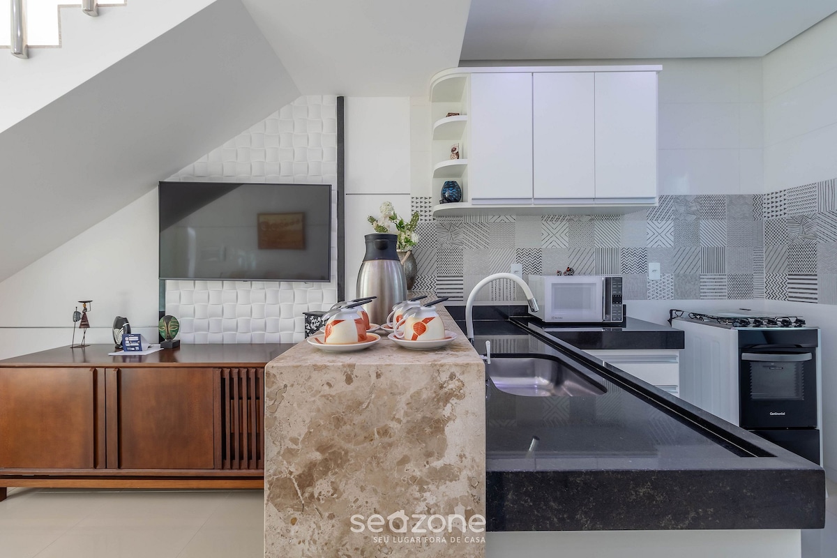 Отдых, комфорт и спокойствие в Порту-Сегуру! Новый дуплекс на краю Таперапуана, в 150 метрах от пляжа. На улице есть рынки, рестораны, закусочные и прачечные. Здесь есть 3 спальни с кондиционером, 3 ванные комнаты, гостиная, кухня, зона обслуживания, Wi-Fi и могут разместиться до 9 человек в удобных кроватях. Кондоминиум с 7 квартирами, бассейном и общей зоной для гурманов. В каждом дуплексе 2 парковочных места.