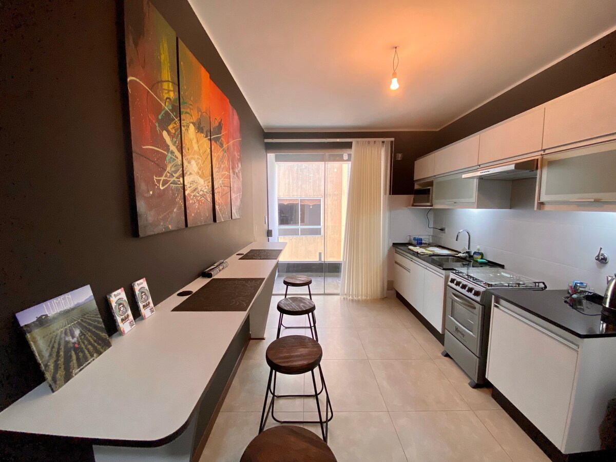 Добро пожаловать в нашу уютную квартиру в сердце Кочабамбы! Расположенный в центральном, новом и современном здании, вы будете недалеко от оживленного парка Фиделя Анже и в нескольких минутах ходьбы от всех туристических мест города, супермаркетов, ночных клубов и ресторанов. Кроме того, вы можете пользоваться такими удобствами здания, как бассейн и красивый экологический сад. Сделайте свое посещение Кочабамбы незабываемым!