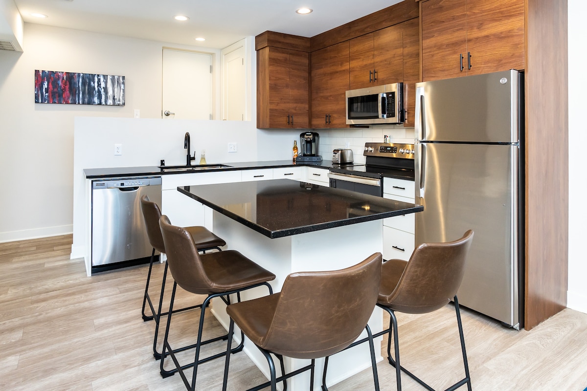 Откройте для себя настоящий городской дом, который был полностью отремонтирован и предлагает 1000 кв. футов вдохновляющего пространства. Современная европейская кухня ждет ваших кулинарных приключений, а спокойная гостиная, украшенная большим камином и 75-дюймовым телевизором, приглашает расслабиться. Плавно войдите в просторную спальню с двуспальной кроватью размера King size и отдельным рабочим местом. Ванная комната с плиткой от пола до потолка и роскошным тропическим душем излучает элегантность. Для комфорта эта квартира полностью кондиционируется и отапливается.