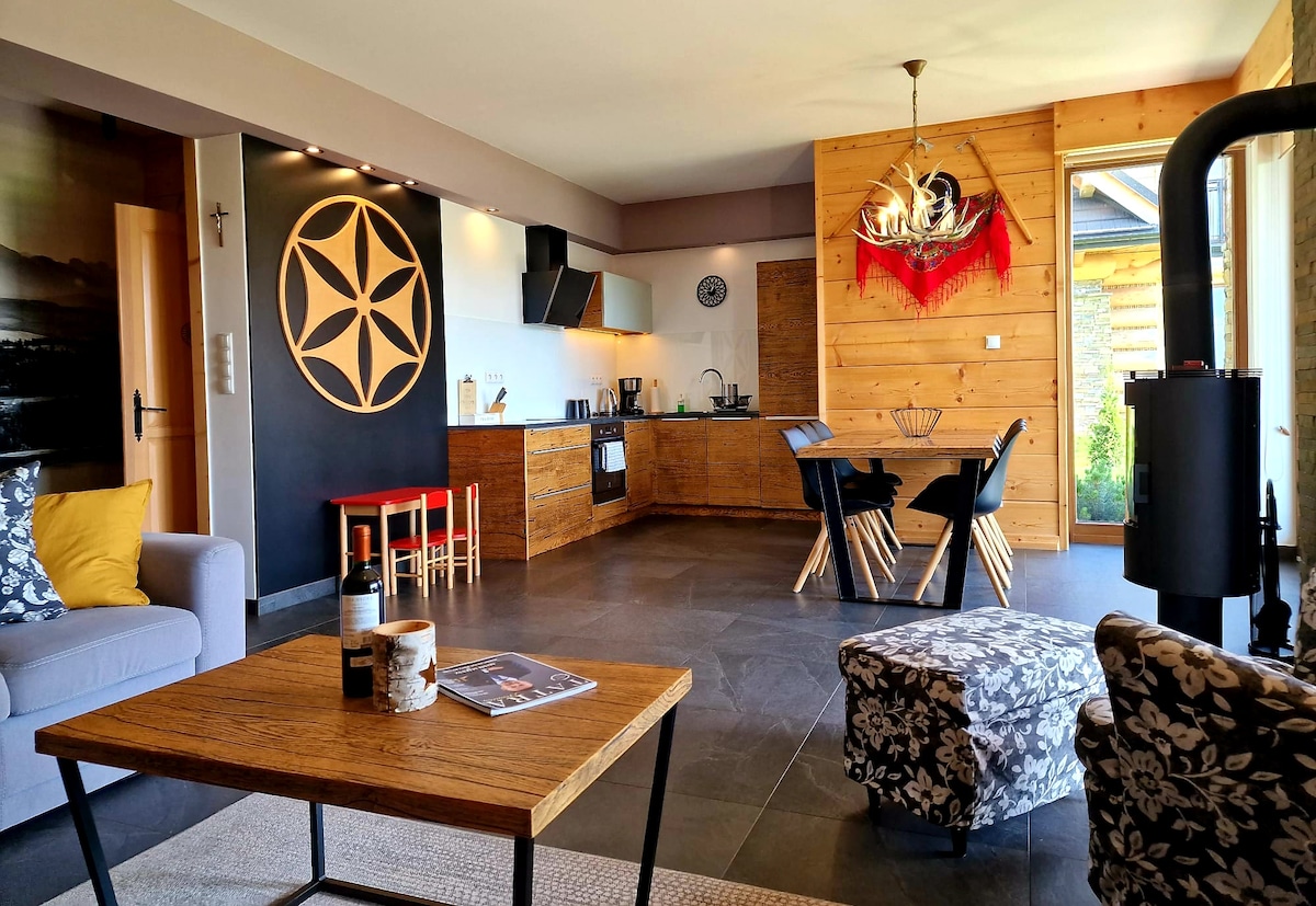 Автономная, полностью независимая квартира, которая является отдельной частью красивого, исторического дома в стиле горца. Квартира находится на первом этаже. В ней есть отдельная ванная комната, гостиная, 2 спальни, мини-кухня и холл. Все, сделанное из дерева, идеально вписывается в атмосферу горной суматохи.