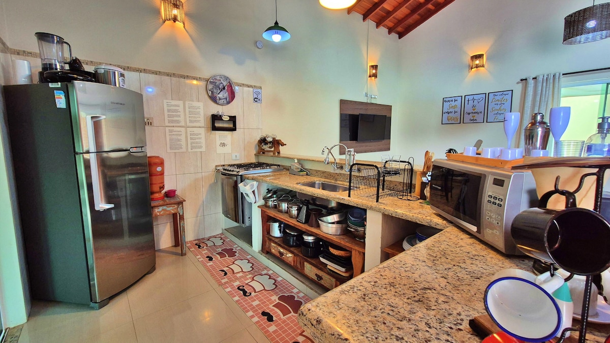 Земля имеет 5000 квадратных метров с уютным деревянным домом, который имеет 3 спальни, являющиеся люксом. Барбекю имеет большое пространство с двумя ванными комнатами в дополнение к бассейну 8x4 и пляжу 2x2. Глубина бассейна составляет от 1,40 м до 1,80 м, а глубина пляжа - 30 см. Есть еще два крытых парковочных места в гараже и место на лужайке для большего количества автомобилей. Домашние животные очень приветствуются, чтобы насладиться и повеселиться в этом широком зеленом пространстве. Вам не разрешено входить в пул. ВСЕ РОЗЕТКИ ДОМА ВНУТРИ И СНАРУЖИ - 220В!