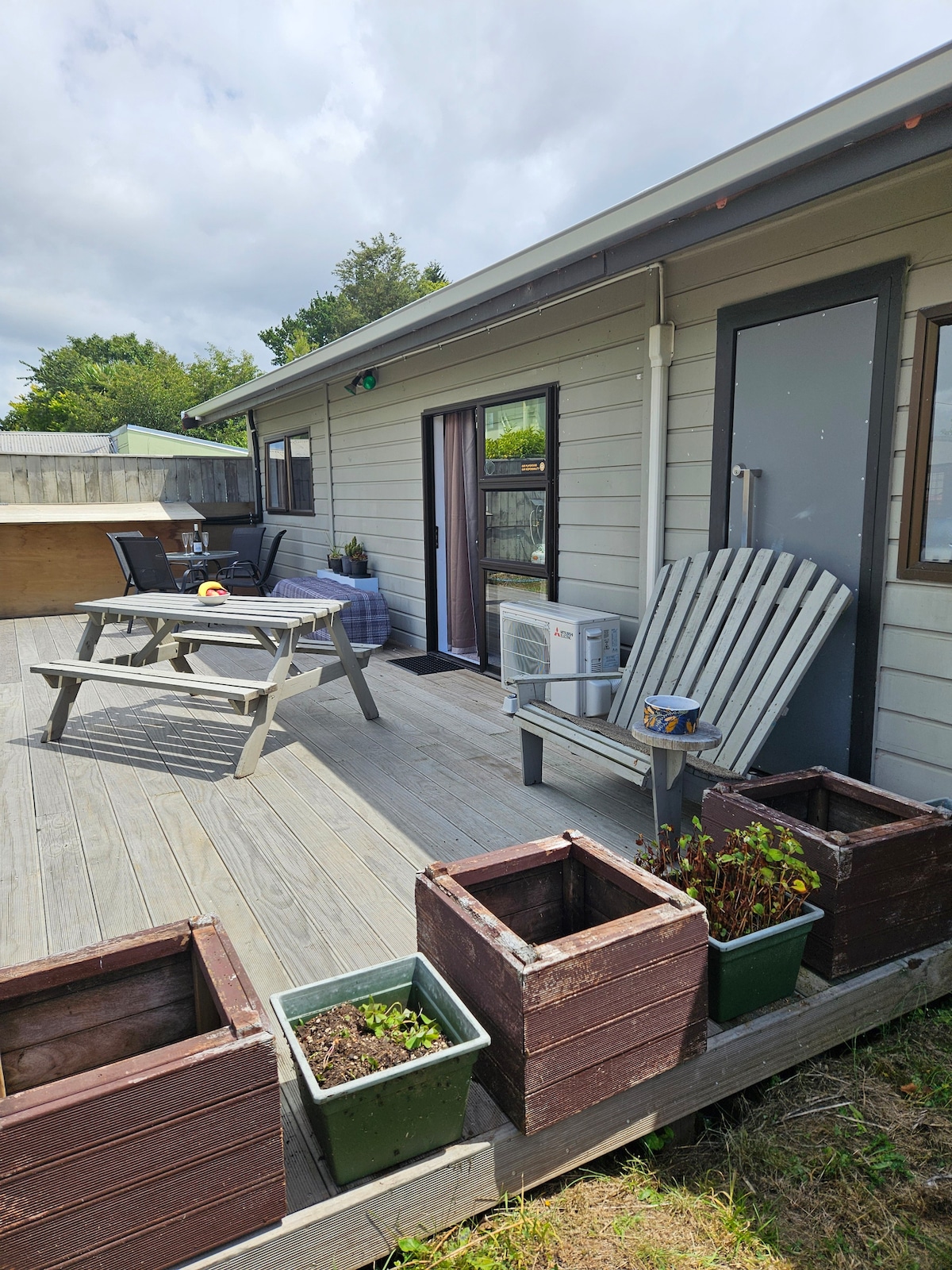 Fabulous Garden & Outdoor bath. 15 minute walk to town & Lake. 5 Star Reviews from over 600 guests Ideal for Couples • Covered courtyard, large outdoor chandelier & dining area • Outdoor cast iron bath . Enchanting shared garden, veggies, fluffy chickens, fruit trees . Well equipped kitchen and washing machine • Kayak available • Free unlimited Wifi . Covered off street parking . Easy access to Taupō's many attractions . Muesli and milk provided for breakfast