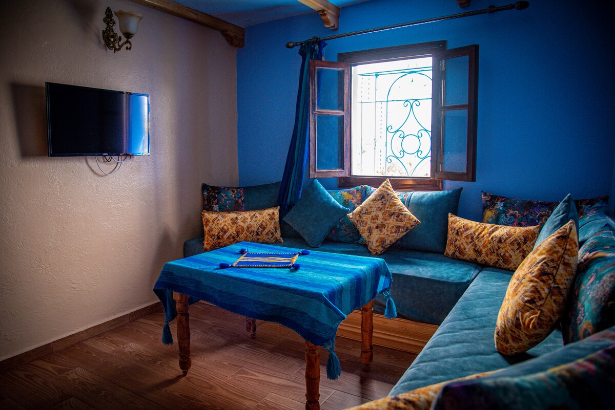 BLue House TownWelcome, we are at your service. We are pleased to host you. We offer a free breakfast between 7 a.m. and 11 a.m. We prepare Moroccan and local meals upon request, coffee and tea at any time for transportation from the city and the airport retreat bed and breakfast (orhanic and fresh). If you are craving fresh air and beautiful panoramic views you have found the right place ! Perfect for families , couples, friends and solo travelers, it's the ideal place