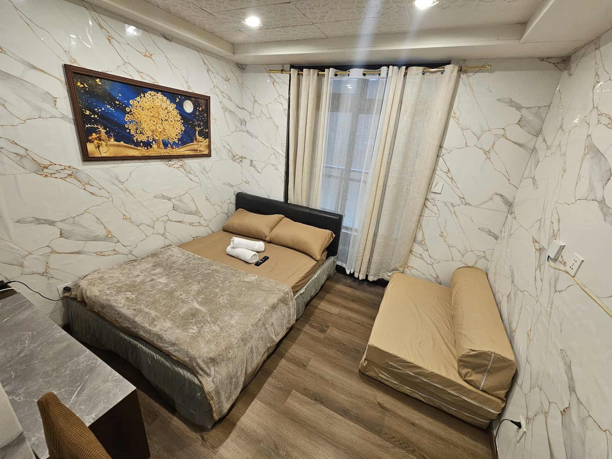 Это студия площадью 27 кв. м, расположенная в Megatower Residences прямо в центре города. Вам понравится уютная атмосфера. Вид у окна тоже расслабляет. Идеально подходит для пар и одиночных путешественников скорость Wi-Fi на 10 Мбит/с Время САМОСТОЯТЕЛЬНОГО заезда - 14:00, время выезда - 12:00. ТРЕБУЕТСЯ РЕГИСТРАЦИЯ / удостоверение личности Гибкое время прибытия и выезда (см. правила дома). Наше жилье требует, чтобы гость правильно утилизировал мусор в специальном мусоропроводе во время выезда