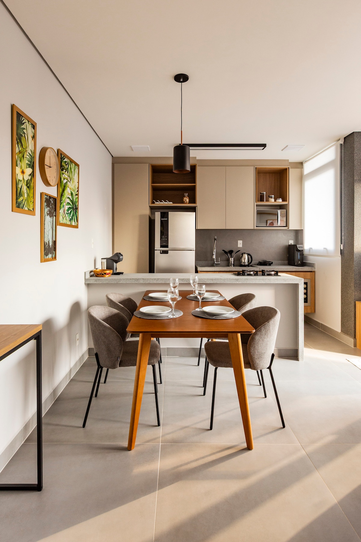 Setin Midtown Campinas ждет вас. Наша квартира в стиле студии площадью 45 кв. м с полностью открытой концепцией, в комплекте с посудой, кондиционером, всеми удобствами, которые вы хотели бы иметь в своем жилье в сочетании с современным декором. К услугам гостей частный гараж, круглосуточный консьерж и «рынок». Мы находимся в 17 минутах от аэропорта Виракопос, в 5 минутах от Royal Palm Events.