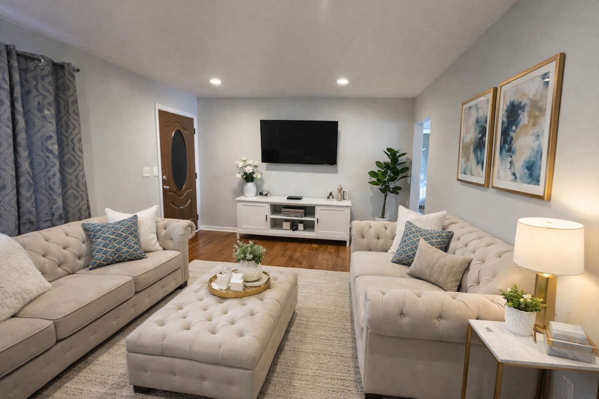 ✨ Modern Luxury Retreat! ✨ Relax in the all-year-use hot tub, gather around the propane fire pit, or enjoy the pool table and game room! Located near downtown Ferndale and Royal Oak, with quick access to restaurants, bars, and the Detroit Zoo. Guests can inquire about in-home massage services or a private chef experience. The projector is available for rent. No parties allowed. Just 15 minutes from Downtown Detroit! Additional ID verification maybe requested upon checkin.