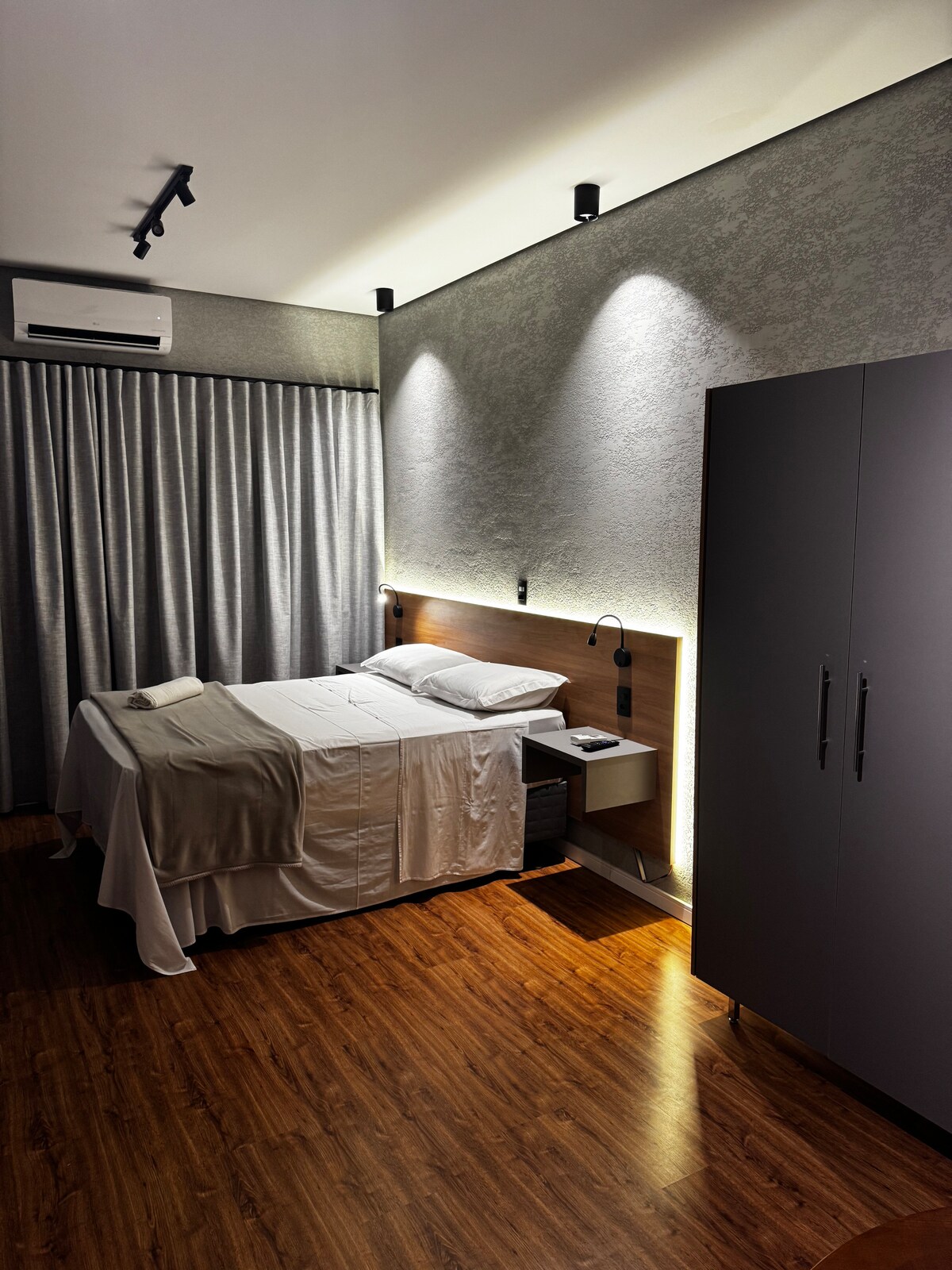 Flat de 1 quarto localizado dentro de hotel no centro de Telêmaco Borba. Confortável e funcional, ideal para quem busca praticidade em viagens a trabalho ou lazer. Conta com recepção 24h, estacionamento gratuito, além de estar próximo a academia, mercado, farmácias e comércios em geral. Excelente localização com segurança e comodidade.