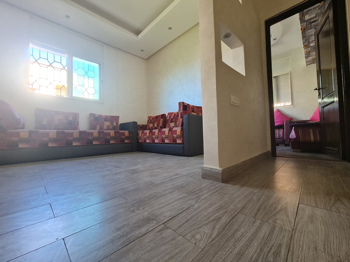 - Appartement entier a 5 minutes en voiture de la plage, - Situé a 2minutes de la gare ferrovière, ce qui facilite la planification de votre visite - Composé de 2 chambres et un salon moderne en open space , avec une cuisine moderne et ouverte sur l'espace de vie , une salle de bain avec douche. - Meublé et totallement équipé avec tout les instalations et ammeublements necessaires - Proche des magasins, banques, restaurants , cafés et snacks . - Couples Marocains non autorisé.