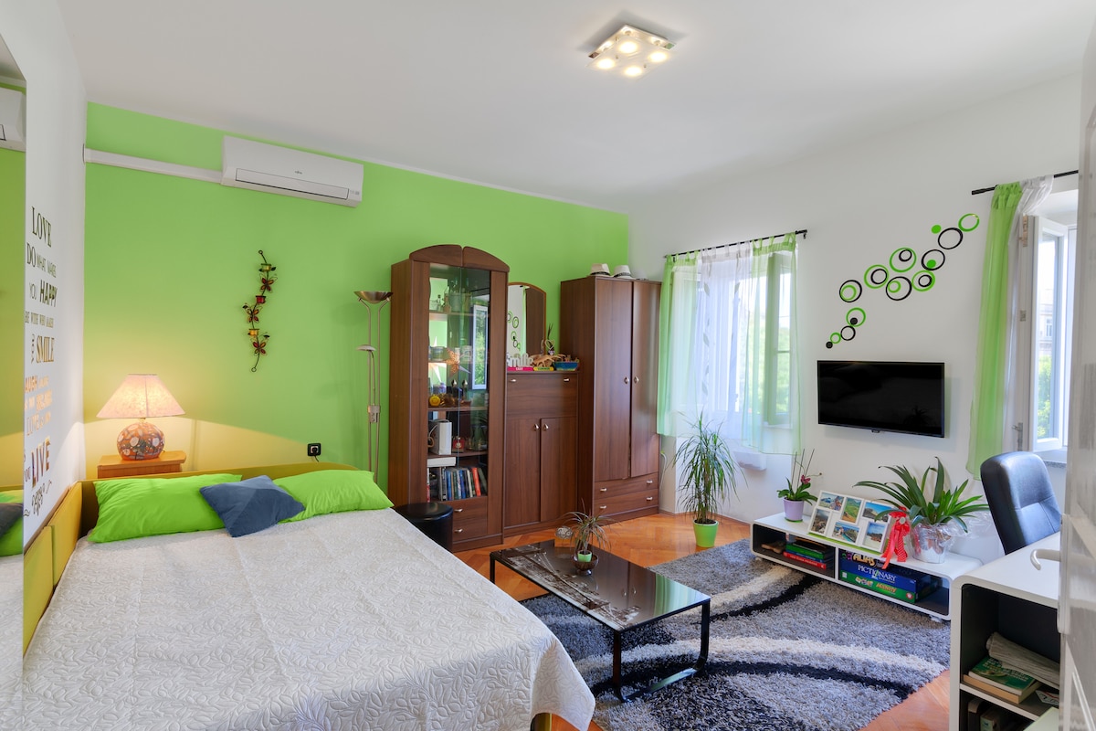 Добро пожаловать в нашу квартиру***, расположенную в центре старого города Пула. На третьем этаже старого австро-венгерского здания вы найдете нашу уютную, очаровательную квартиру площадью 40 м2 с 1 спальней, гостиной с диваном-кроватью, кухней и ванной комнатой. Расположение идеально подходит для изучения основных исторических достопримечательностей, культуры и искусства, ресторанов и баров. До пляжей можно доехать на машине или общественном транспорте. Идеально подходит для пар, семей, групп друзей и индивидуальных приключений. Мы желаем вам теплого приветствия.
