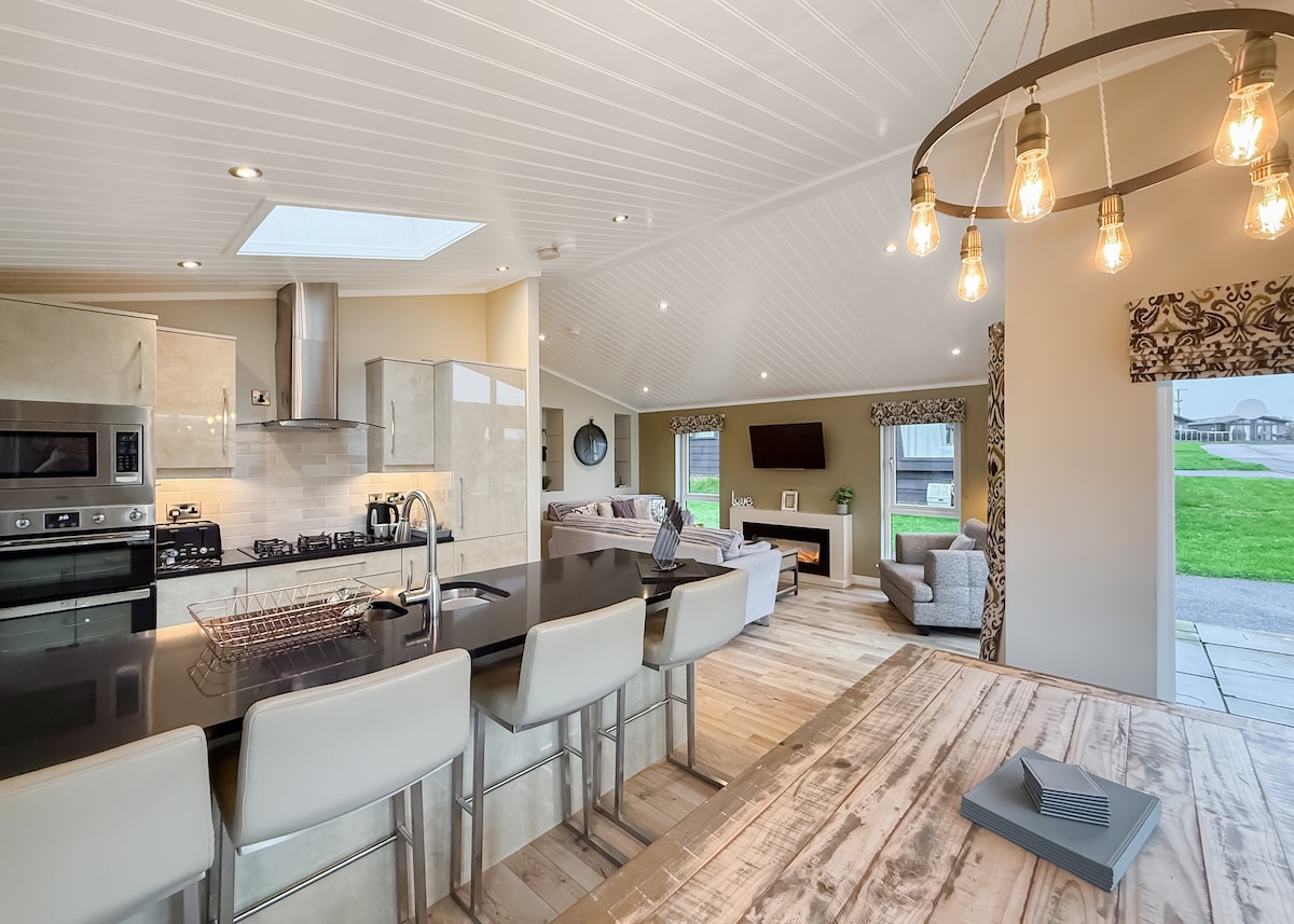 Недавно отремонтированный. Номер 10 - это современное шале с 2 спальнями, спальное место на 5 человек, расположенное в 5 минутах ходьбы от песчаного пляжа Нолтон-Хейвен и прибрежной тропы Пембрукшира. Современная гостиная открытой планировки с полностью оборудованной кухней, обеденной зоной, большим удобным кожаным диваном и дровяной горелкой. Главная спальня с двуспальной кроватью размера King size, двухъярусная кровать с двуспальной кроватью и душевая комната.