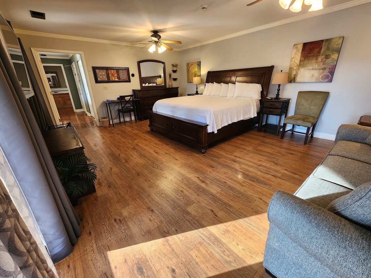 В восточном крыле LakeTrail House расположены главная спальня, солярий и полностью оборудованная кухня. Частная гидромассажная ванна на улице (предоплата 100 долларов за уборку и установку). В вашем распоряжении частная терраса с вдохновляющим видом на окружающий лес. В десяти минутах ходьбы по лесу можно дойти пешком до озера площадью 6 акров и природной зоны озера Благодарность. В Восточном крыле есть столовая и мини-кухня. Полностью оборудованная кухня доступна за отдельную плату, если западное крыло не арендуется. ВЕЧЕРИНКИ ЗАПРЕЩЕНЫ.